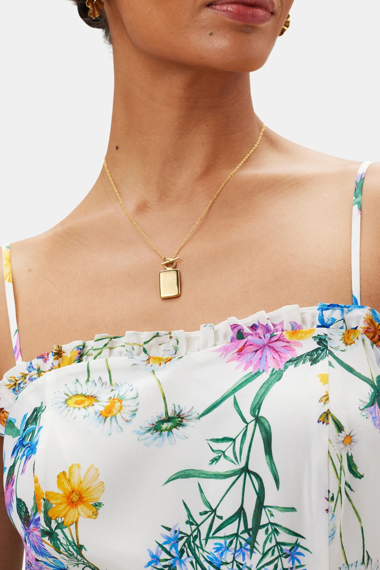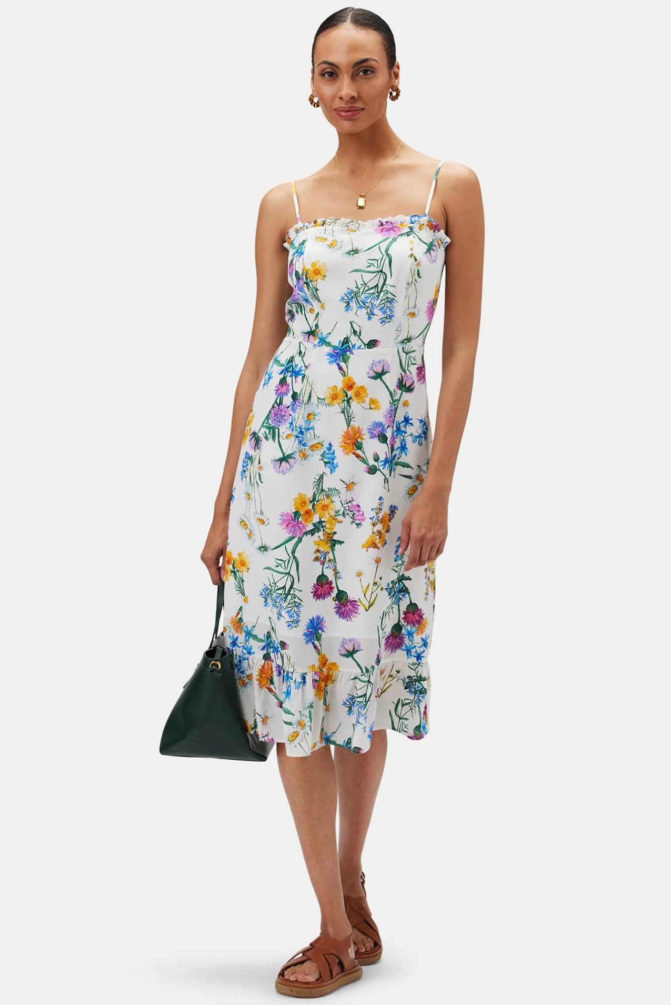 Get ready to charm in our whimsical, washable silk floral print dress. With spaghetti straps and delightful ruffle detail, it’s an effortless essential for any occasion.