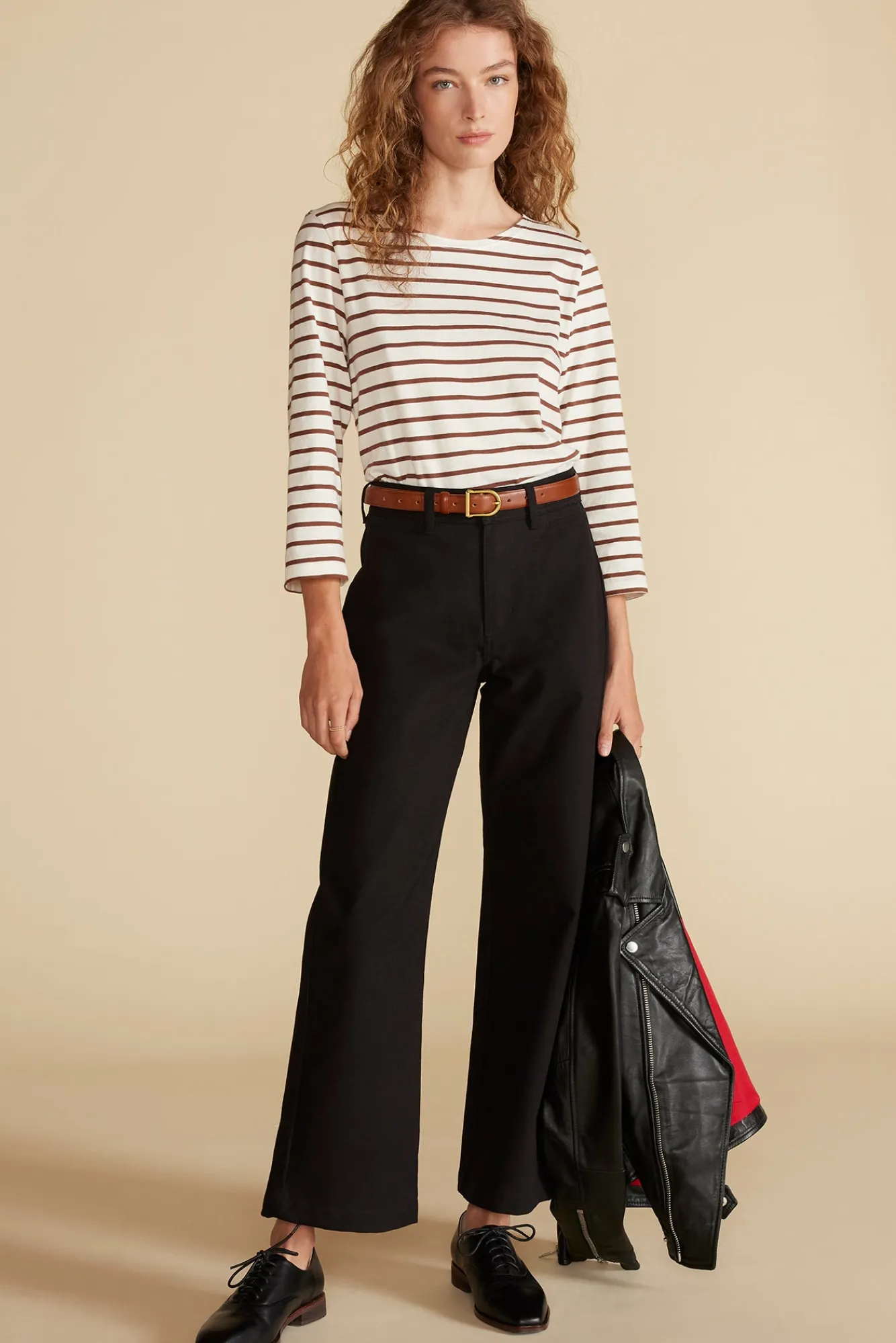 – A 3/4 sleeve boatneck tee. Features a boxier fit and looser sleeve than the Francoise in modal.