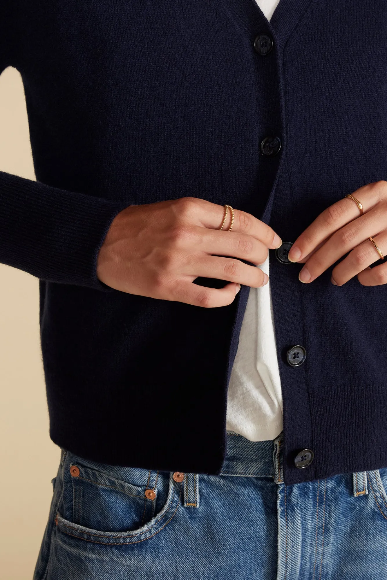 A timeless addition to any wardrobe, Mason is a v-neck cardigan crafted from 100% recycled cashmere. Its season-spanning versatility and incredible softness make it a worthy investment.
