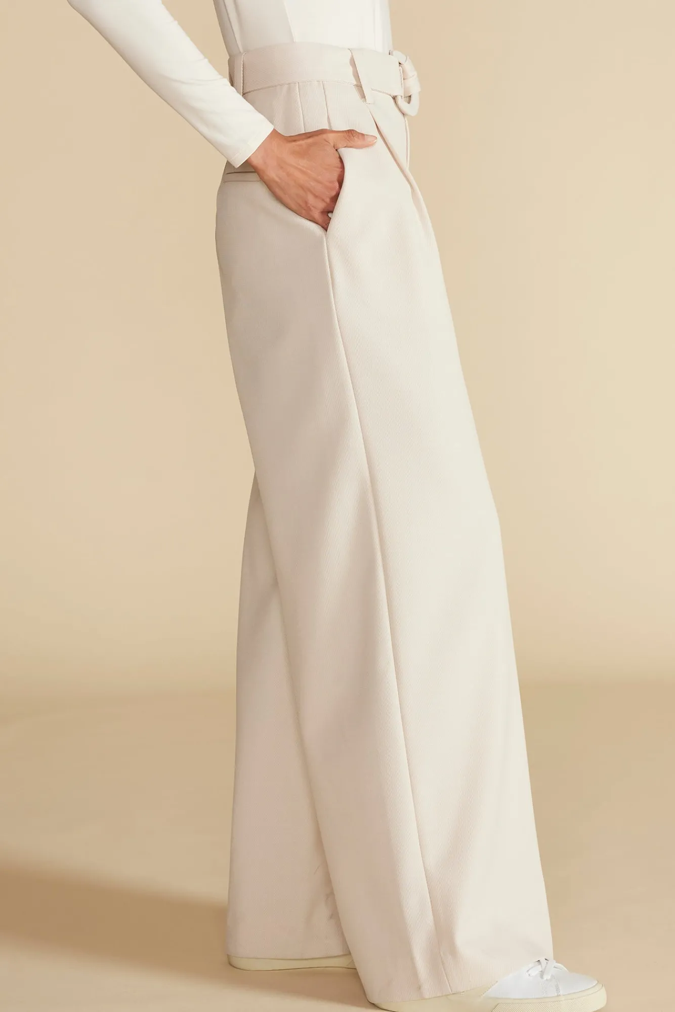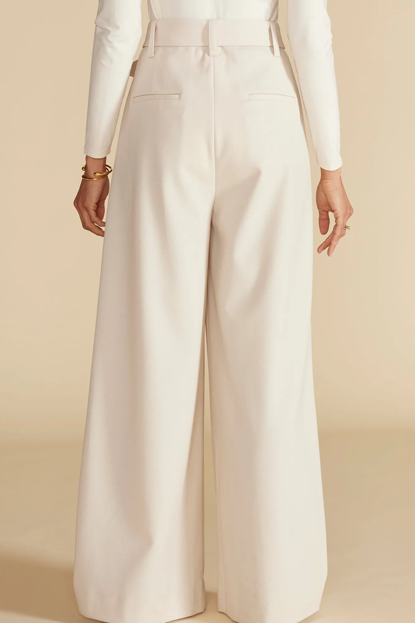 – Tailored pants featuring a fitted waist, high rise, and wide legs. Fully lined.