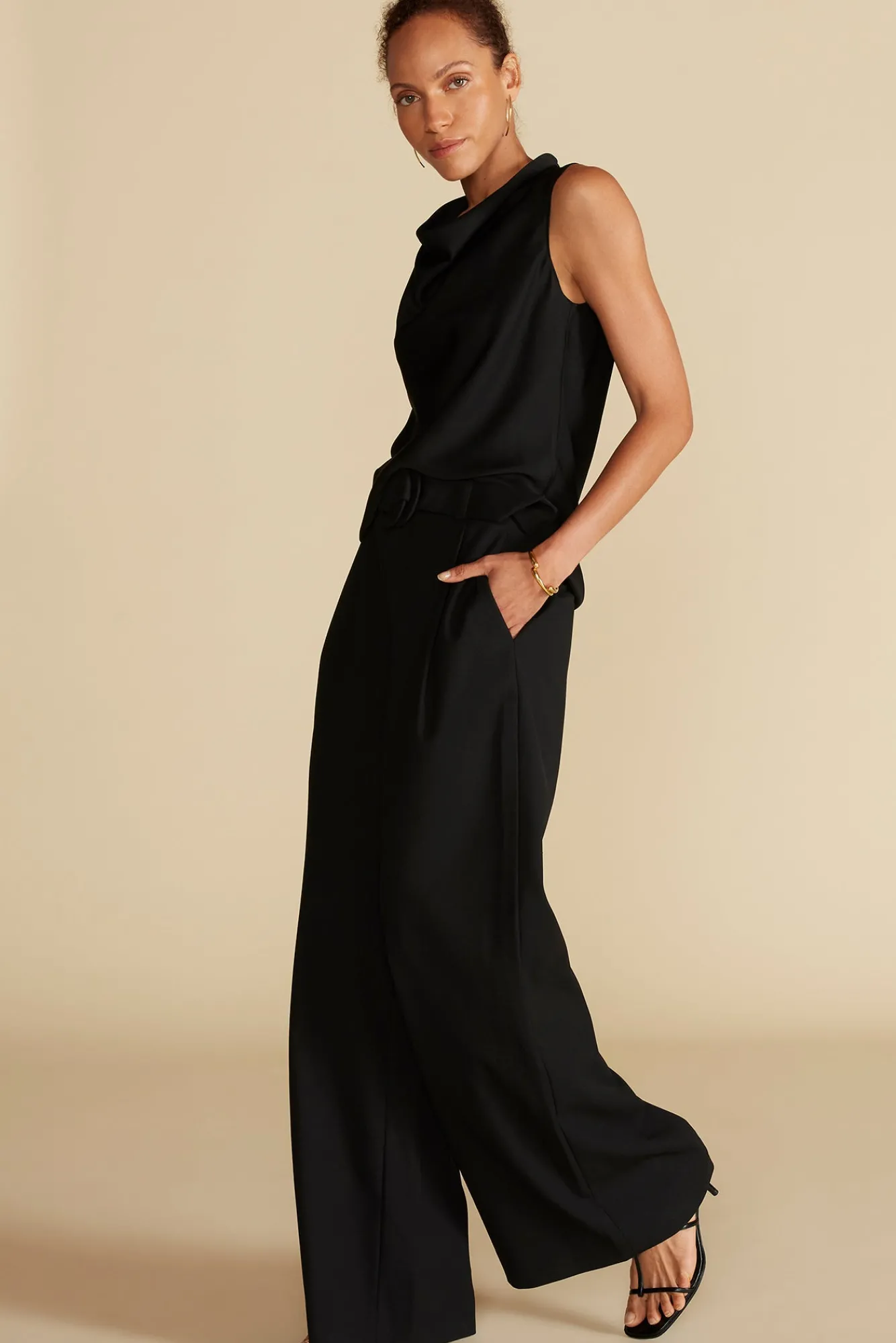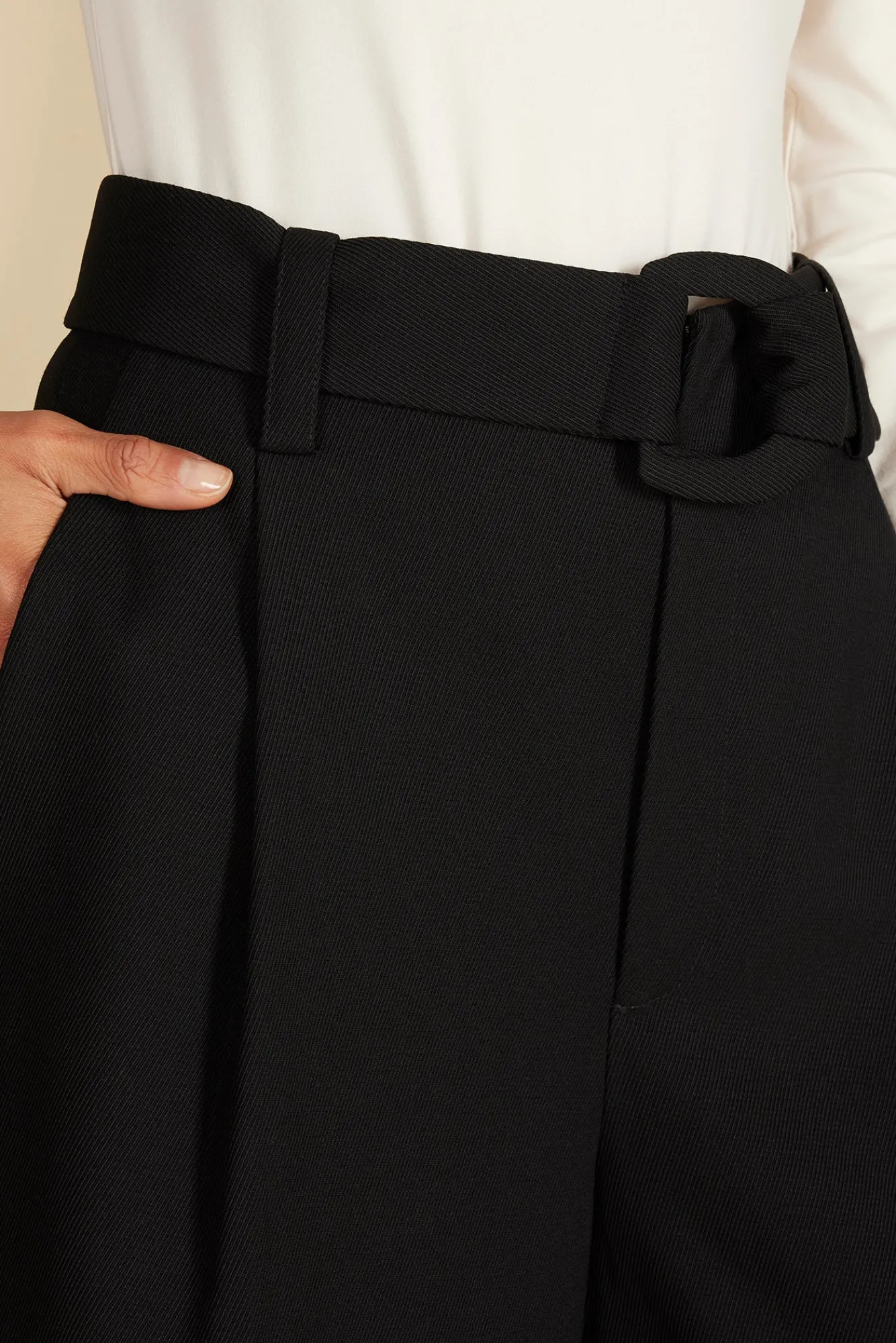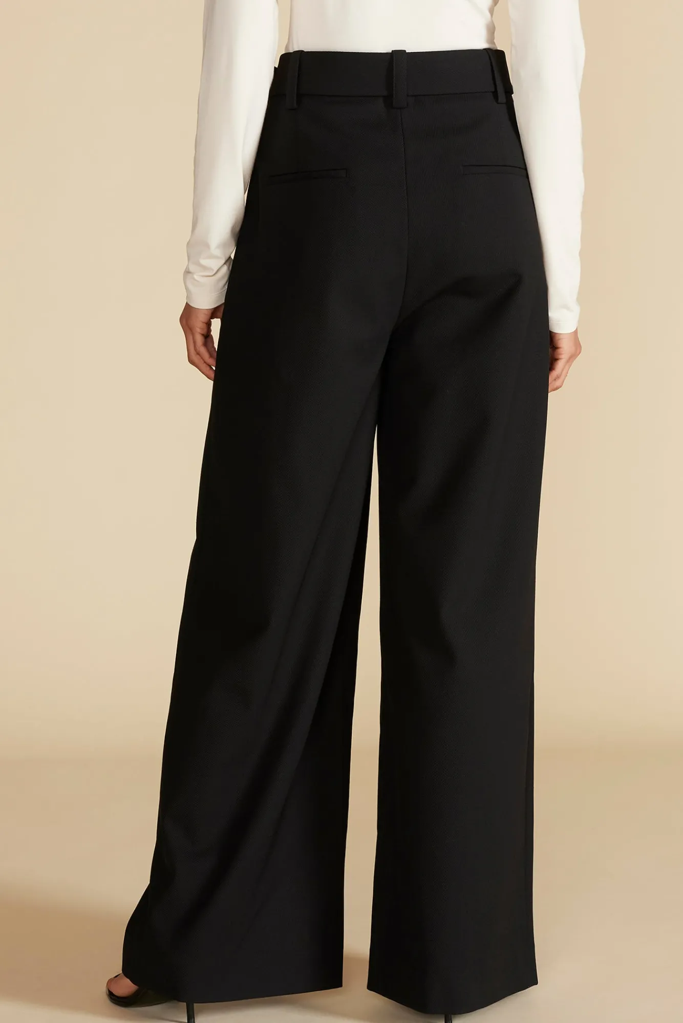 – Tailored pants featuring a fitted waist, high rise, and wide legs. Fully lined.
