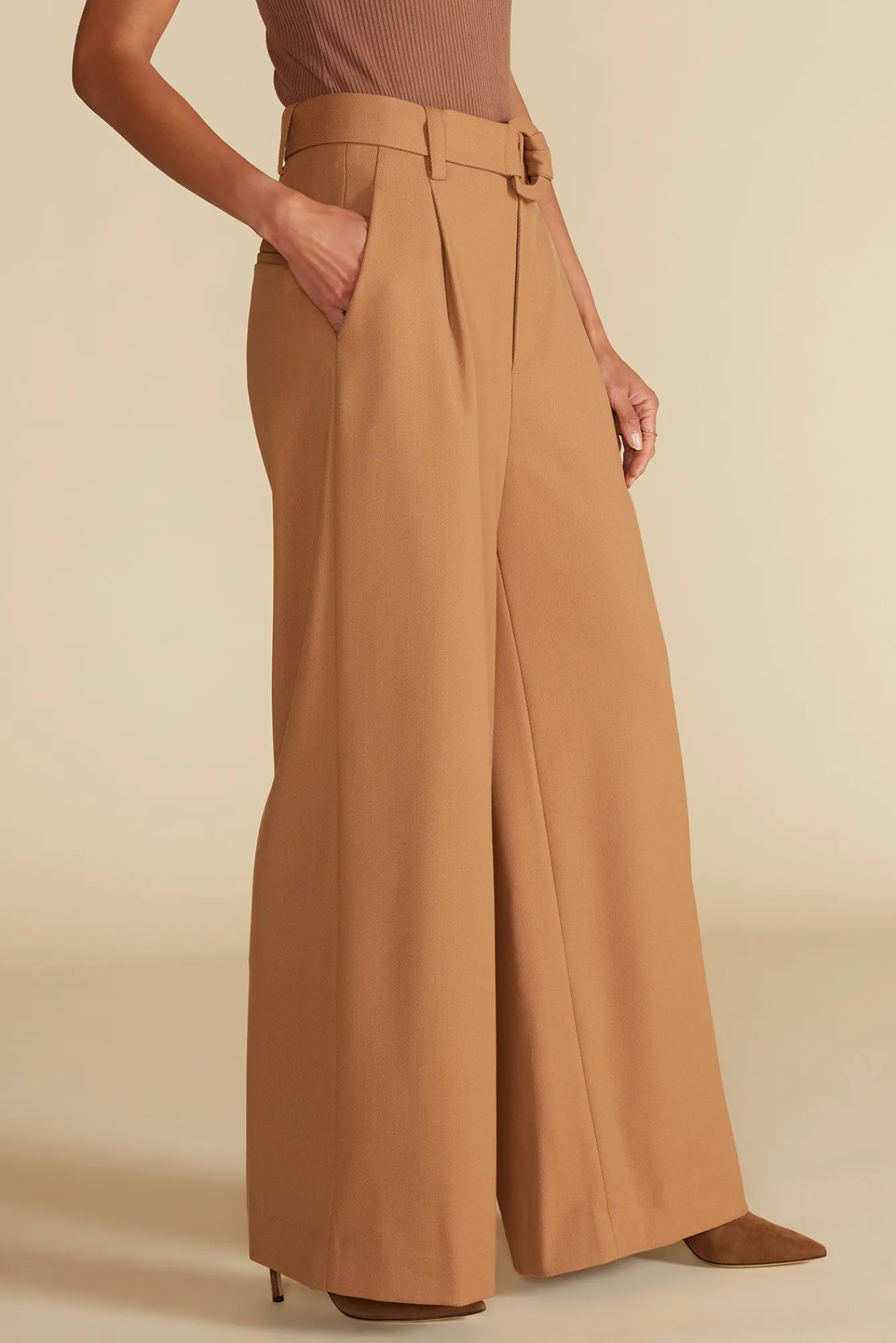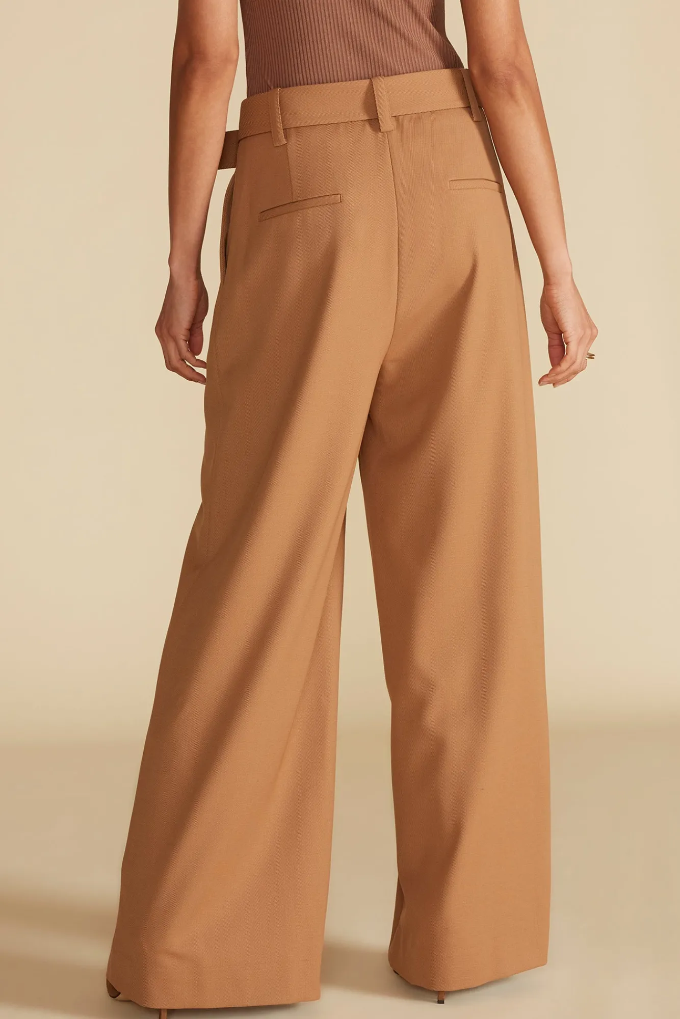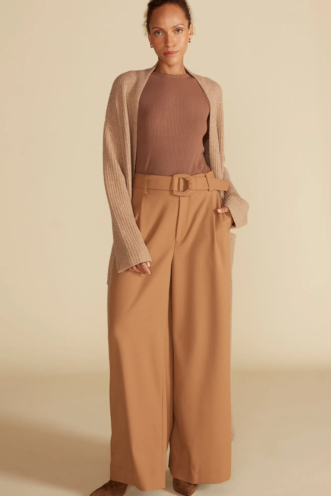 – Tailored pants featuring a fitted waist, high rise, and wide legs. Fully lined.