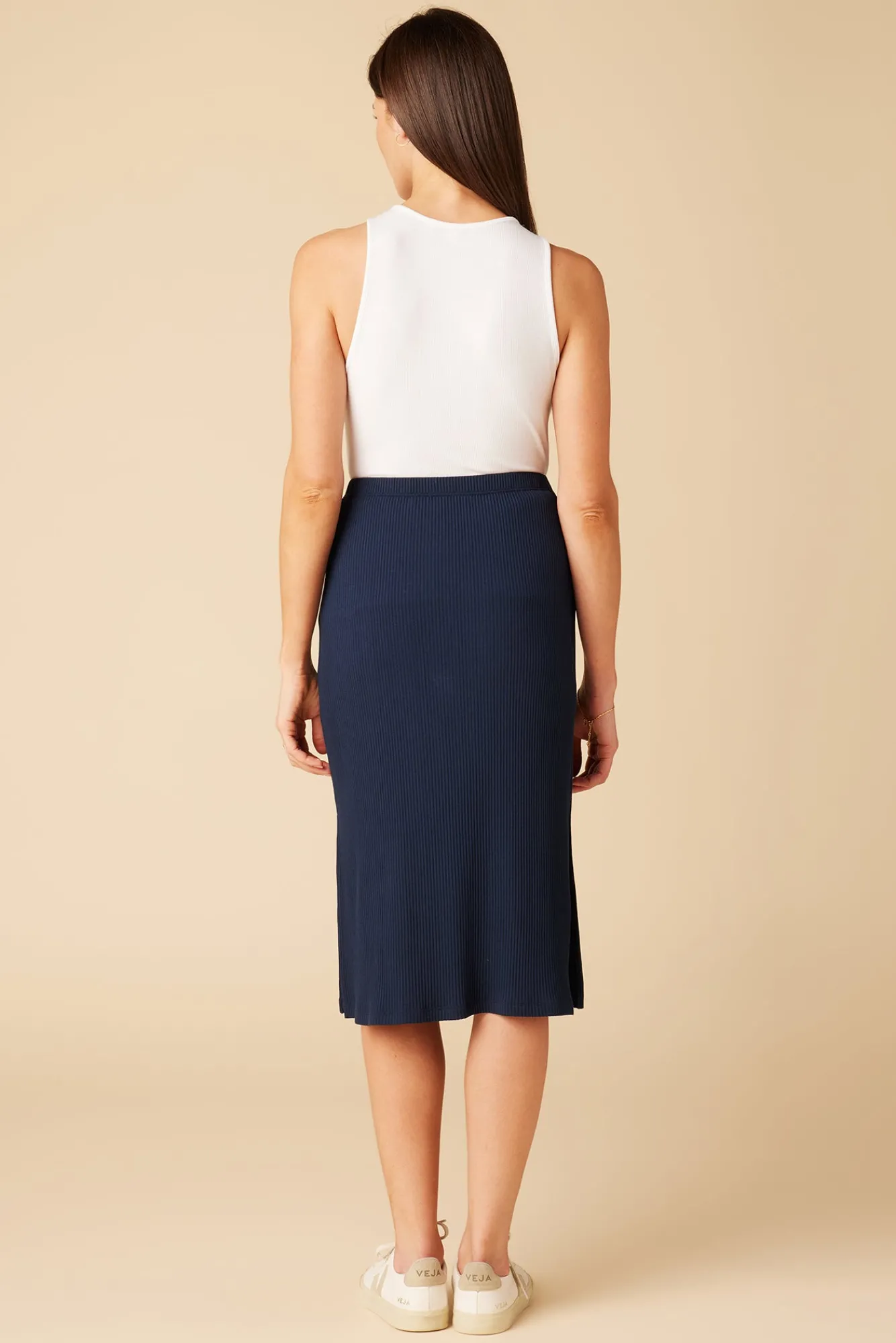 - Ribbed skirt with a straight silhouette