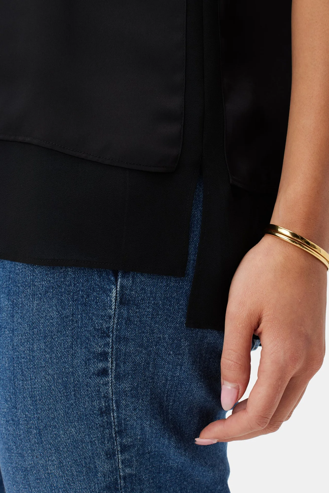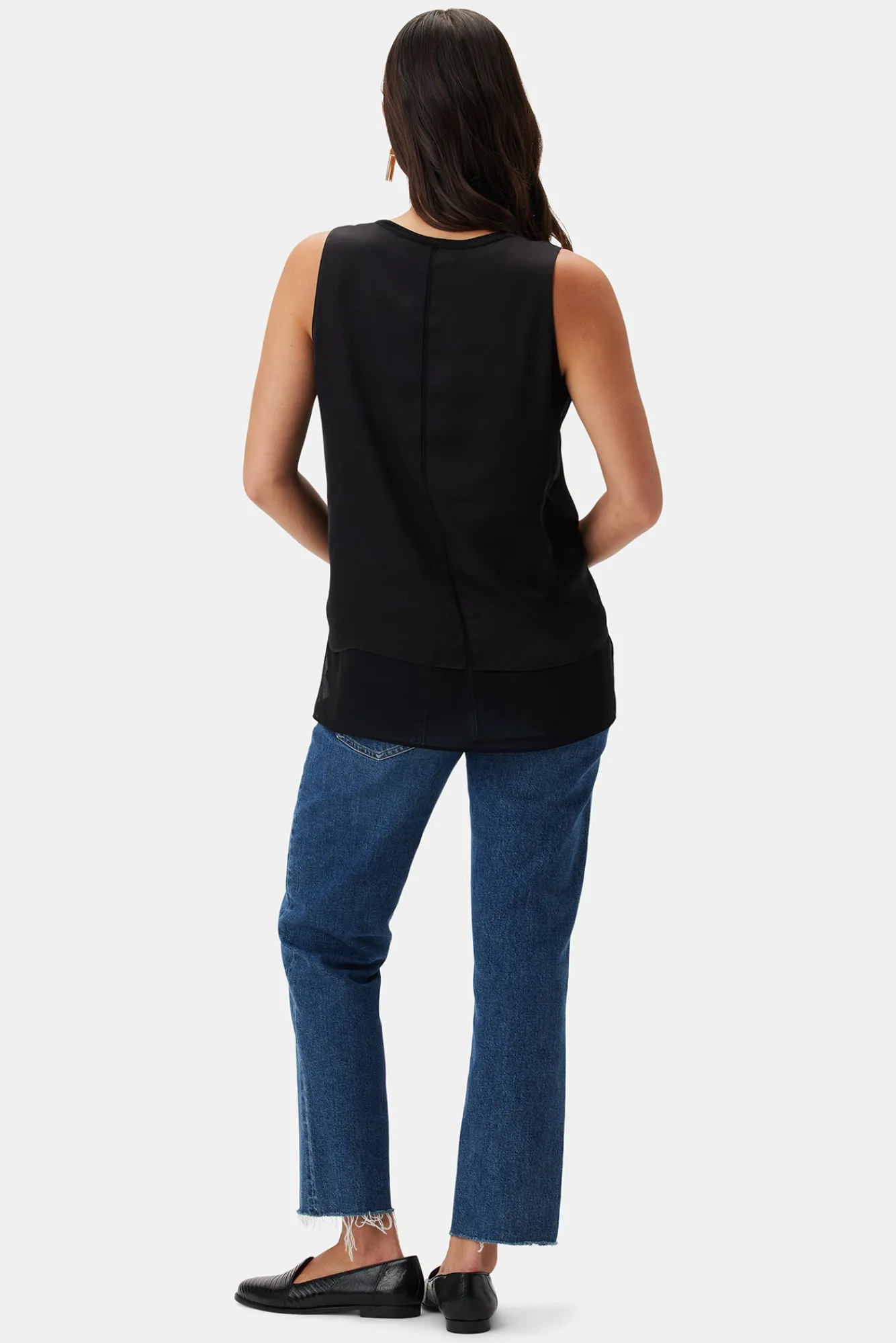 - Recycled polyester tank features chiffon lining, lined andrib trim at neck line.