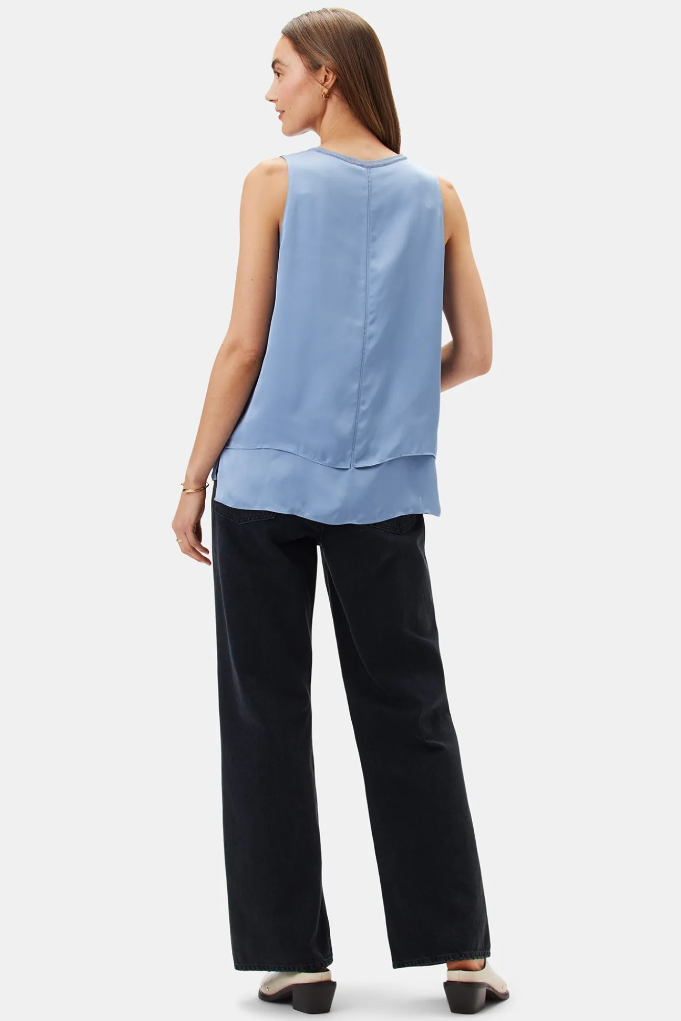 Featuring clean lines and soft silky fabric, this tank exudes casual elegance. The double-lined silhouette provides total coverage while giving light as air, layered vibes.