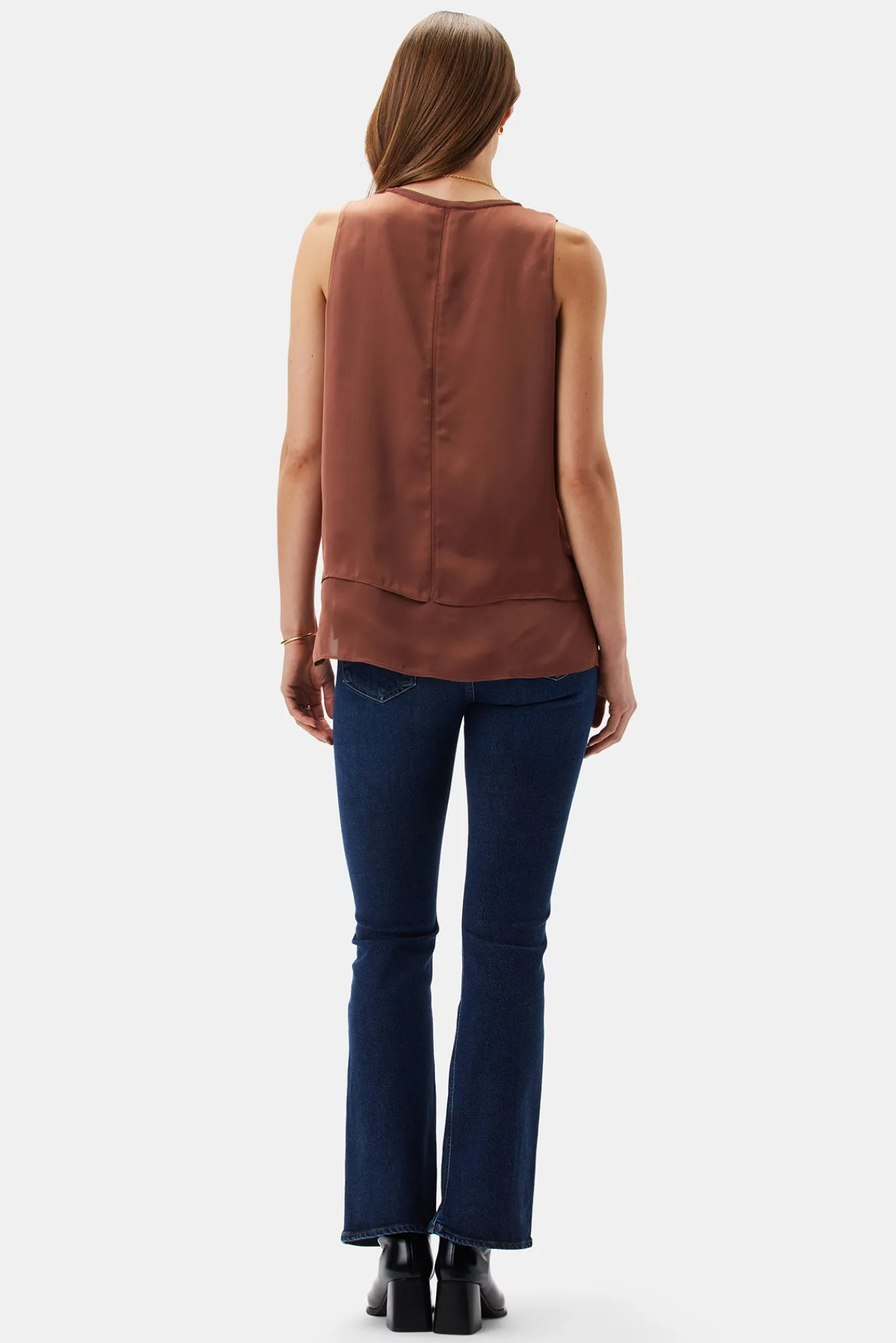 Featuring clean lines and soft silky fabric, this tank exudes casual elegance. The double-lined silhouette provides total coverage while giving an airy, layered look.